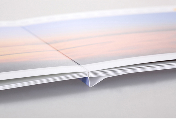 锁线精装和前面平装描述的工艺是一样的,只是封面封底为硬壳,这种装订方式都可以解决这个展开度的问题,适合跨页图的展现,同时牢固度也要远远好于普通精装。