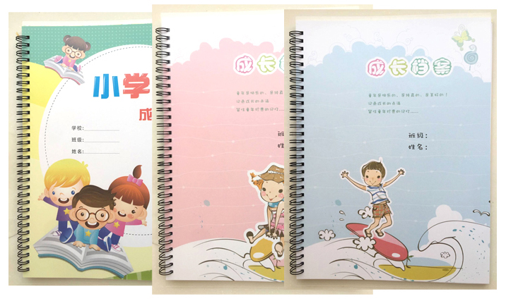 装订方法:环状金属线穿过文件左页边缘的装订孔,然后折压成册,封面上面可以加装透明/雾面胶片。