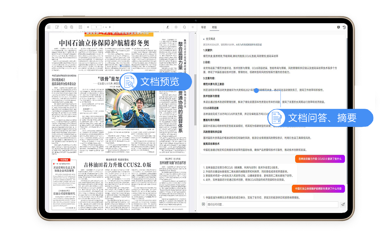 利用大模型能力快速理解您的问题,从复杂的文档中提取有效信息,辅助您更快速、更高效的阅读并理解文档,提高工作效率和准确性。
