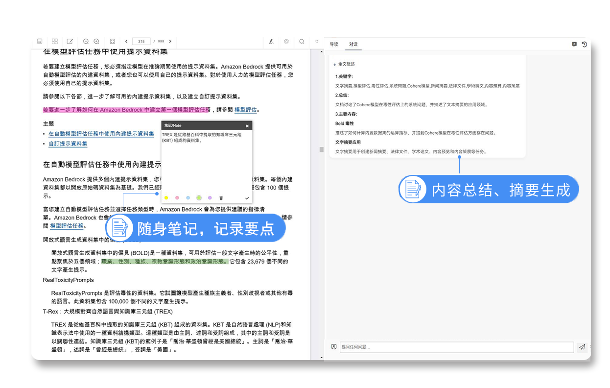 基于文档自动生成报告或摘要,无需手动操作,通过AI技术帮您提升知识运用和工作效率。
